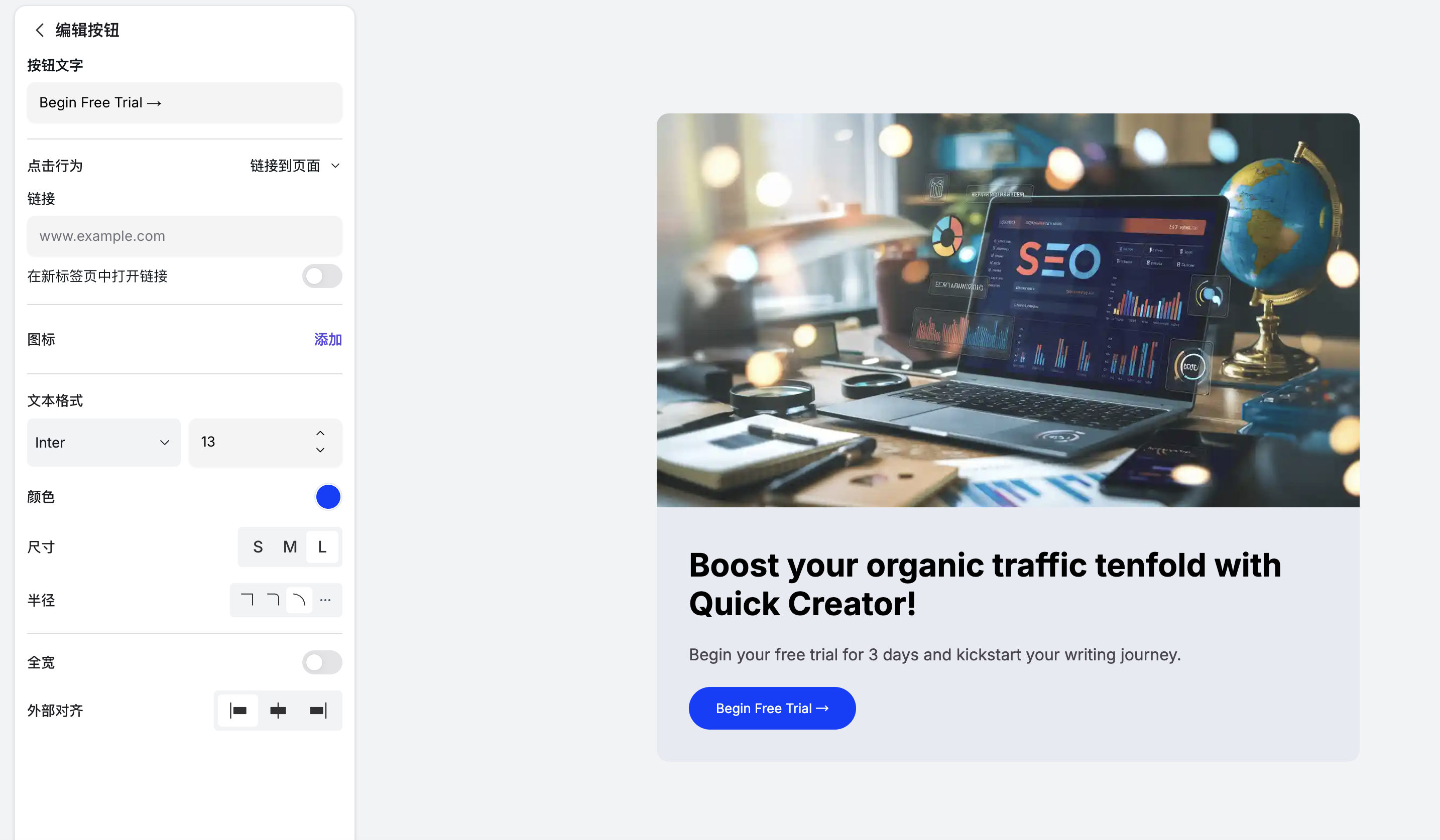 营销小组件目前处于 Beta 测试阶段,我们对所有 QuickCreator 的用户免费开放使用。测试期结束后,您仍然可以继续使用这期间创建的组件。